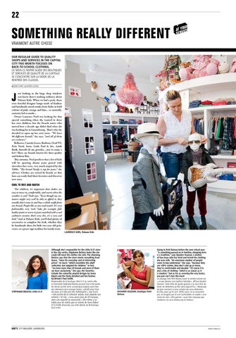 OUR REGULAR GUIDE TO QUALITY SHOPS AND SERVICES IN THE CAPITAL CITY THIS MONTH FOCUSES ON BACK-TO-SCHOOL CLOTHING. CE MOIS-CI, NOTRE GUIDE DES BOUTIQUES ET SERVICES DE QUALITÉ DE LA CAPITALE SE CONCENTRE SUR LA MODE DE LA RENTRÉE DES CLASSES. NWendy Winn OAndrés Lejona