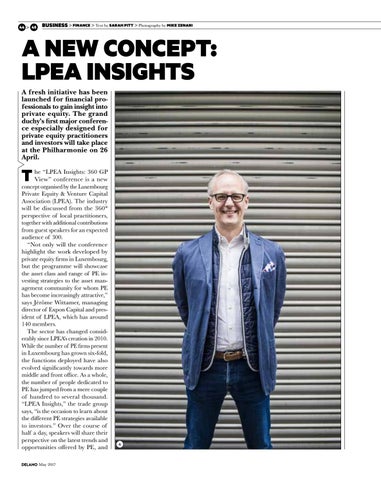 A NEW CONCEPT: LPEA INSIGHTS A fresh initiative has been launched for financial pro fessionals to gain insight into private equity. The grand duchy’s first major conferen ce espec iall y des igned for private equity practitioners and investors will take place at the Philharmonie on 26 April.