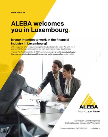 Association Luxembourgeoise des Employés de Banque et d’Assurance 29, Avenue Monterey | T +352 223 228 - 1 | info@aleba.lu
