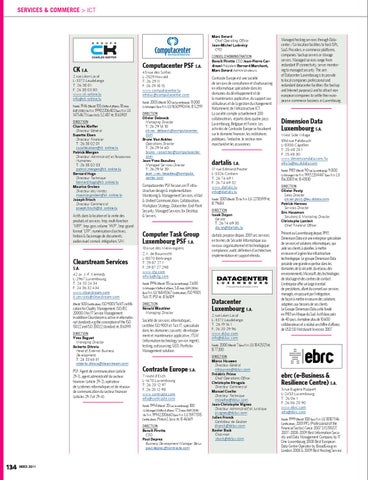 Computacenter PSF S.A. 45 rue des Scillas L-2529 Howald T: 26 29 11 F: 26 29 18 15 www.computacenter.lu infolux@computacenter.com Fondé: 2005 Effectif: 50 (au Luxembourg), 11.000 (à l’étranger) Euro TVA: LU 16509904 RC: B 52391