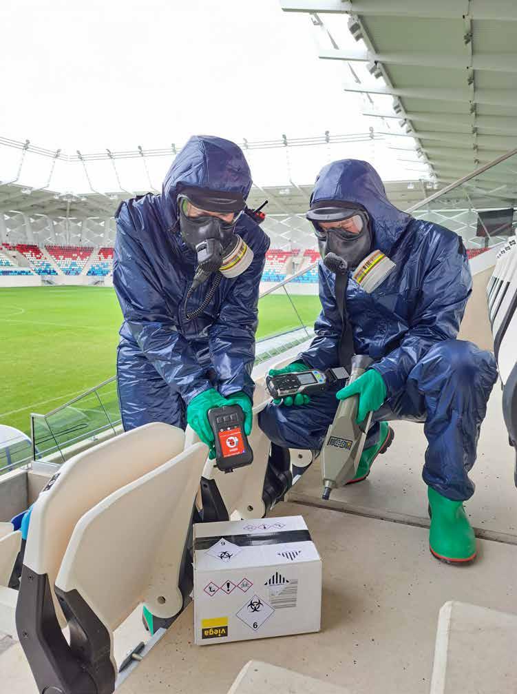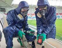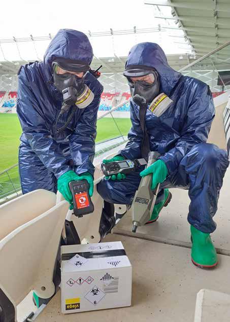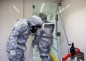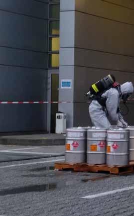 l’unité de protection radiologique, analytique, opérationnelle (dont les membres interviennent en tenue de protection adaptée au danger dans les zones où se dispersent les substances toxiques), de décontamination (décontamination de victimes ou impliqués, des intervenants, et de matériel) et de dépollution (aquatique et terrestre). Des métiers bien différents. « À la création du CGDIS en 2018, nous avons procédé à la fusion de ces groupes d’intervention spéciaux. Ce fut une idée logique, car les missions de chaque groupe avaient une forte relation les unes avec les autres. Ces cinq unités ont alors été regroupées pour former le groupe NRBC, dont j’ai été demandé de prendre la tête grâce à mon expérience dans la planification, la préparation et les interventions au sein de la Division de la radioprotection. Il fallait rapprocher bénévoles et professionnels de chaque unité pour créer un groupe interopérable » Si Patrick Breuskin chapeaute l’ensemble des unités, chacune d’entre elles dispose d’un chef d’unité et d’un chef adjoint ainsi que d’une certaine autonomie dans leurs tâches.