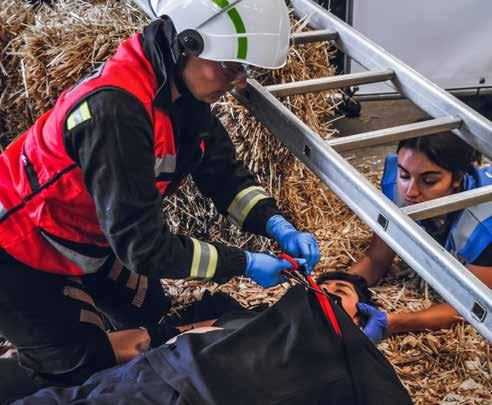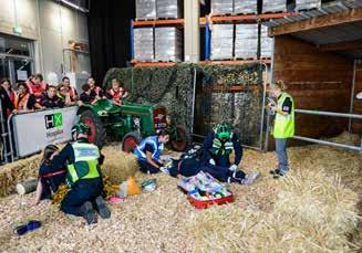 During a trauma challenge, teams made up of two medics treat patients in critical condition set in a realistic trauma/medical scenario. While in 2019 the La Rochelle team had set up a scenario representing their well-known beach, the Luxemburgish organization committee set up a pit in a farm with a tractor, cows and the correspondent sound environment. A team of volunteers invested a lot of energy, time and talent to simulate wounds and other medical symptoms.