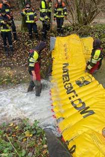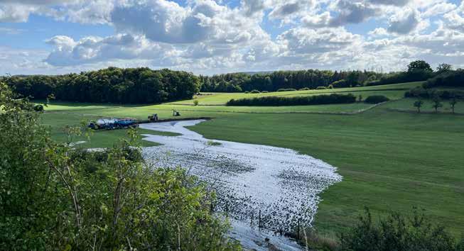 vide pour des raisons d’entretien. Ceci a permis de ralentir le flux et de mobiliser plusieurs citernes afin de mettre en place une noria pour pomper le lisier directement depuis la cuve et en parallèle au niveau du barrage afin, dans un second temps, d’épandre le lisier dans les environs.