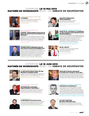 EXPERTISE LE 14 MAI 2013 MATINĂE DE WORKSHOPS 8âHâ30 â 13âH ABBAYE DE NEUMĂNSTER Cycle Business Administration â Finance â Legal