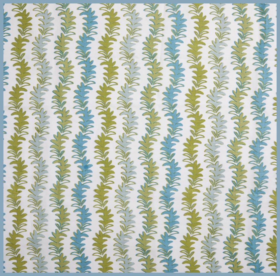 Lorient is our most recent screen-print and embroidered design. This multi colored coral design creates a border and includes a hand- guided satin stitch embroidery detail. Perfectly tropical and sophisticated, we know Lorient will bring the beach inside your home all year round.