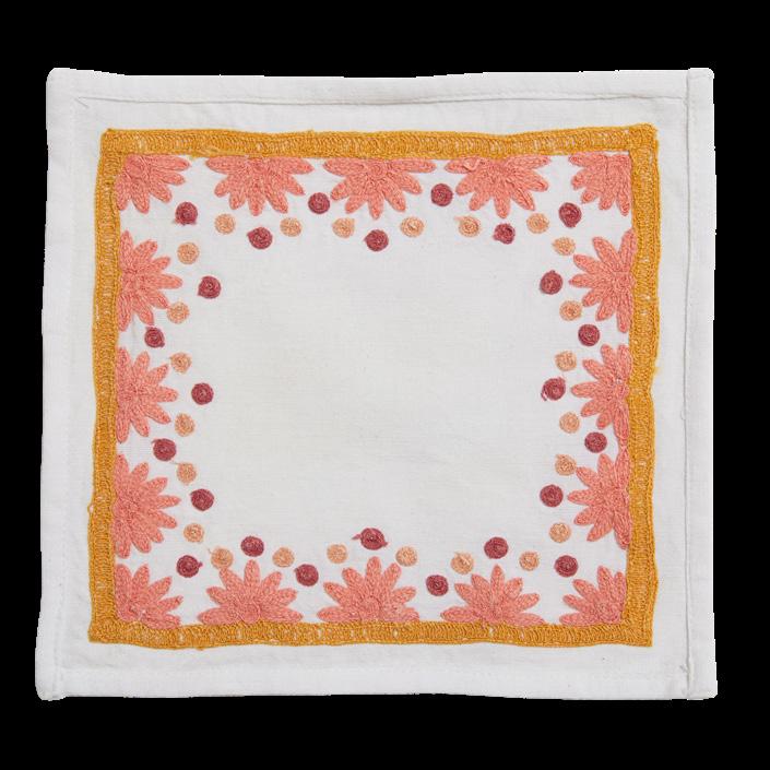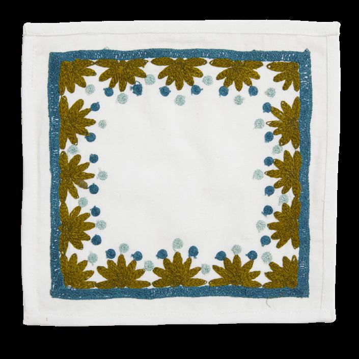 Our Starburst design is created using an artisanal chain stitch embroidery technique. This embroidery resembles the techniques used to create original Suzani textiles. This napkin adds a festive detail to any holiday tablescape, but our colorways are perennial.