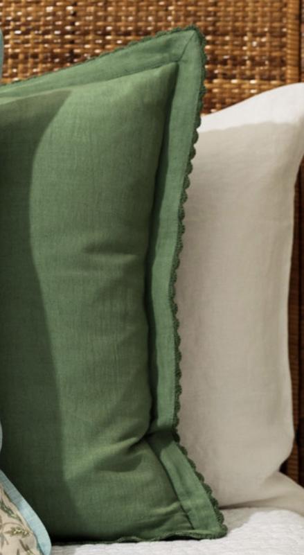 Sophisticated and clean, the Antoinette pillows feature a hand crocheted edge. Easy to pair with almost any design and style, this versatile pillow is soft and inviting – a perfect staple for the home.