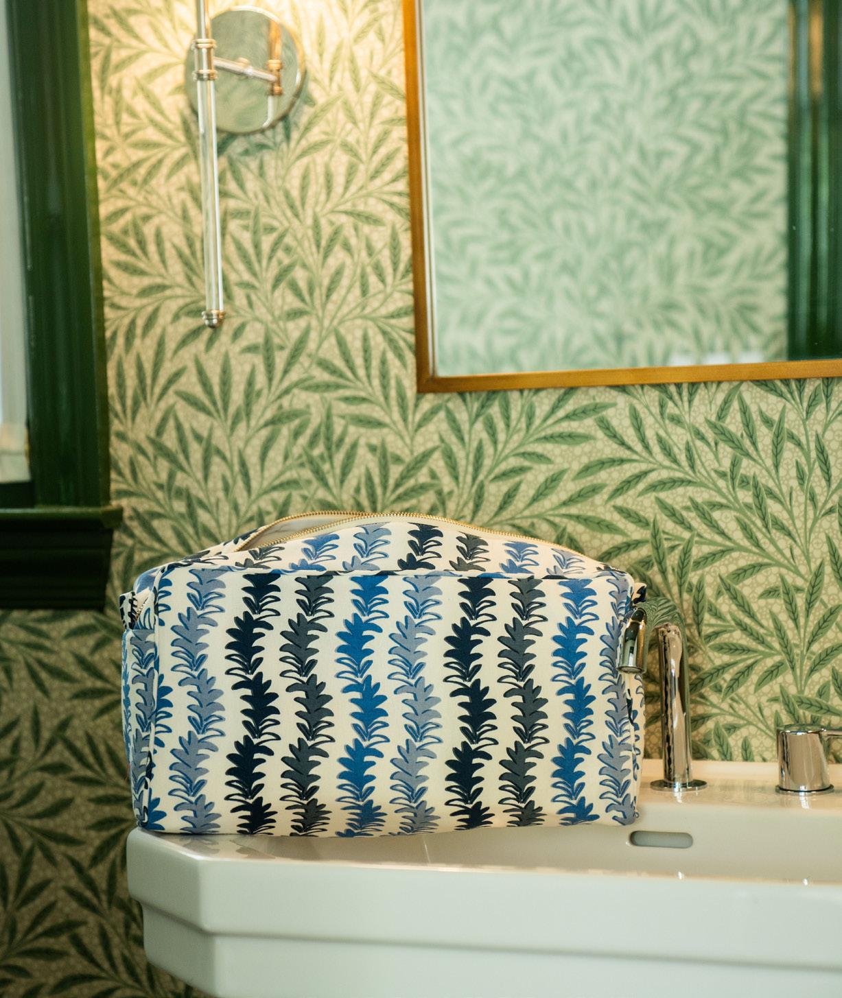 A tropical play on the fleur de lis, Prytania is geometric at its core which allows it to be layered seamlessly with other patterns yet also make an impact on its own. This hand blocked design celebrates the organic and imperfect nature of the hand printing process.