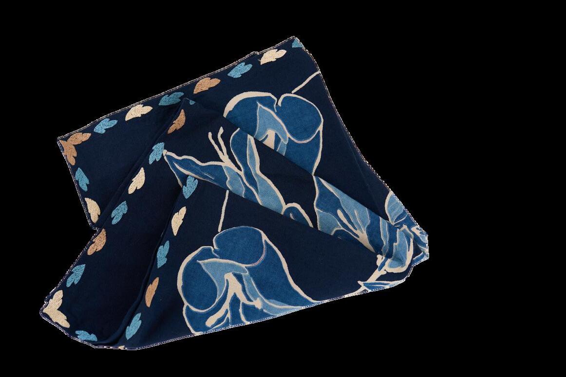 Our dinner napkin for the collection features a line drawn bougainvillea floral print with an embroidered trim motif found throughout the collection of linens and glassware. Sold in sets of 4, 20x20 inches in size