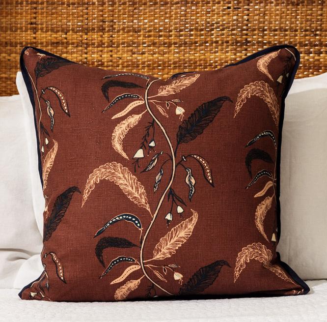 Lorient is our most recent screen-print and embroidered design. This multi colored coral design creates a border and includes a hand- guided satin stitch embroidery detail. Perfectly tropical and sophisticated, we know Lorient will bring the beach inside your home all year round.