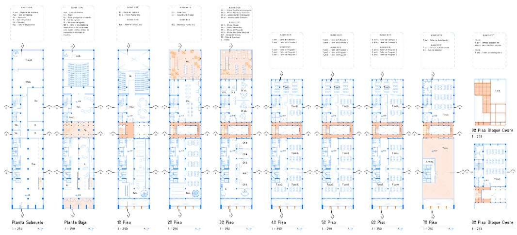 La manzana organizada de una forma des-estructurada permite abrirse a las sensibilidades del usuario por medio del recorrido, divagando por el mismo de diversas formas, explorando las diferentes actividades que intentan alcanzar la interacción y vinculación de quienes lo exploren.