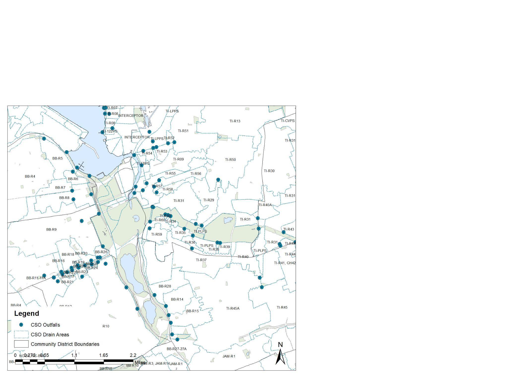 All of this development has created a concerning lack of open and green space. In the study area, there is less than 1 acre of open space per 1000 people. In addition, large areas that are considered “green space” are impermeable spaces like parking lots, leading to stormwater management issues. These issues are compounded by the presence of 5 Combined Sewer Outflows (CSOs) within a 2 mile distance of each other, all along the creek and south end of Flushing Bay.
