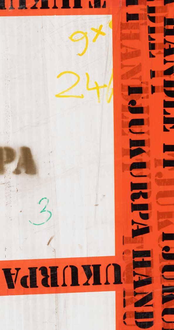 acrylic and aerosol paint on found paper, di-bond and packing tape, 84 × 59.5cm each (p.58—59)