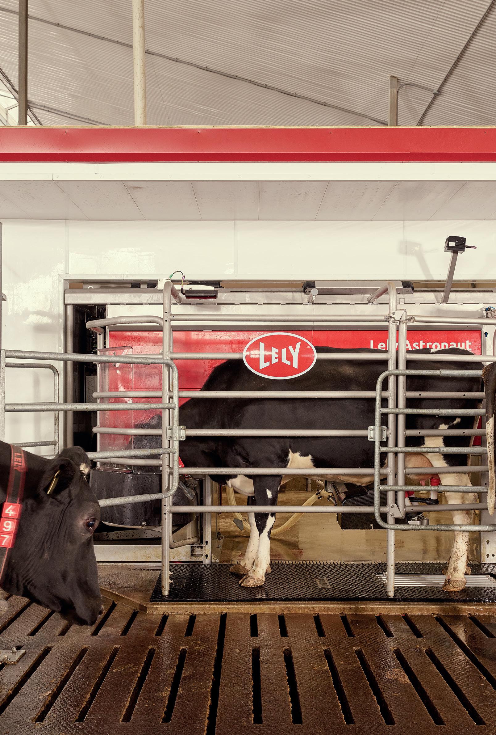 Hannu ja Niina Gröhnin na vetassa lypsää kaksi robottia. LED-valot ja valopäädyt ja -harja parantavat työmukavuutta ja sääs tävät energiaa valaistuksessa. Navettaan asennettiin tänä vuonna separaattori, josta saadaan lantakuivike parsiin.