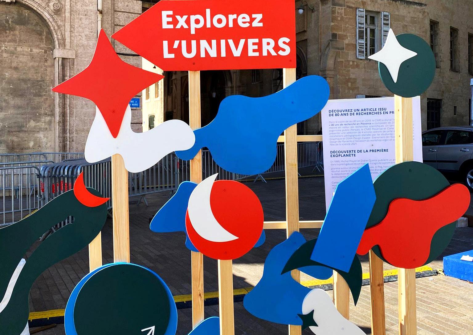 organisme public français, le CNRS Provence et Corse est ravi de vous présenter une sélection de articles extraits de cette exposition sur les installations pédagogiques réalisées par les étudiantes en DSAA Design Graphique et DSAA Design Espace venement de cole Supérieure de Design de Marseille à l’occasion du workshop organisé dans le cadre de la DÉCOUVERTE DE LA PREMIÈRE EXOPLANÈTE En 1995, Michel Mayor et Didier Queloz publient un article historique dans la prestigieuse revue Nature. s’agit de la première détection d’une planète autour d’une étoile normale, 51 Peg, hors du système solaire. Ce résultat ouvre la voie une nouvelle discipline au sein de l’astronomie la détection et l’étude des exoplanètes, dont plusieurs milliers ont été découvertes depuis. Cette détection historique été obtenue l’Observatoire de Haute-Provence, en collaboration avec des chercheurs et ingénieurs de Depuis, le Laboratoire d’astrophysique de Marseille (Aix-Marseille Université/Centre national d’études spatiales/CNRS) poursuivi un travail important dans le domaine naissant de la détection des exoplanètes, en contribuant en particulier au satellite CoRoT lancé en 2006 et à l’instrument SPHERE installé au Very Large Telescope de l’Observatoire européen austral au Chili.