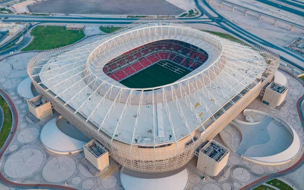ning, ultra-modern stadium located on Doha’s glittering waterfront Central Business District on the east coast. This innovative and pioneering 40,000-seat stadium, designed by world-renowned architecture firm Fen wick Iribarren Architects, is made of recycled shipping containers and modular steel elements that represent Qatar’s rich maritime heritage. Each container is a dif ferent color, making the stadium a truly appealing des tination.