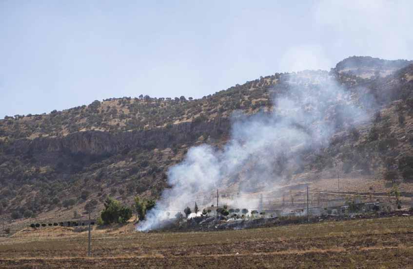 Photos shared earlier by INA showed a big blaze and dark fumes at the Lanaz re nery, located on al-Kuwayr-Erbil road.