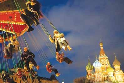 Children and their parents ride a carousel at a Christmas Market set up in Red Square decorated for New Year festivities with the St. Basil’s Cathedral in the background in Moscow, Russia, . The temperature in Moscow is around -6 degree Celsius (21.2 degree Fahrenheit) ./AP