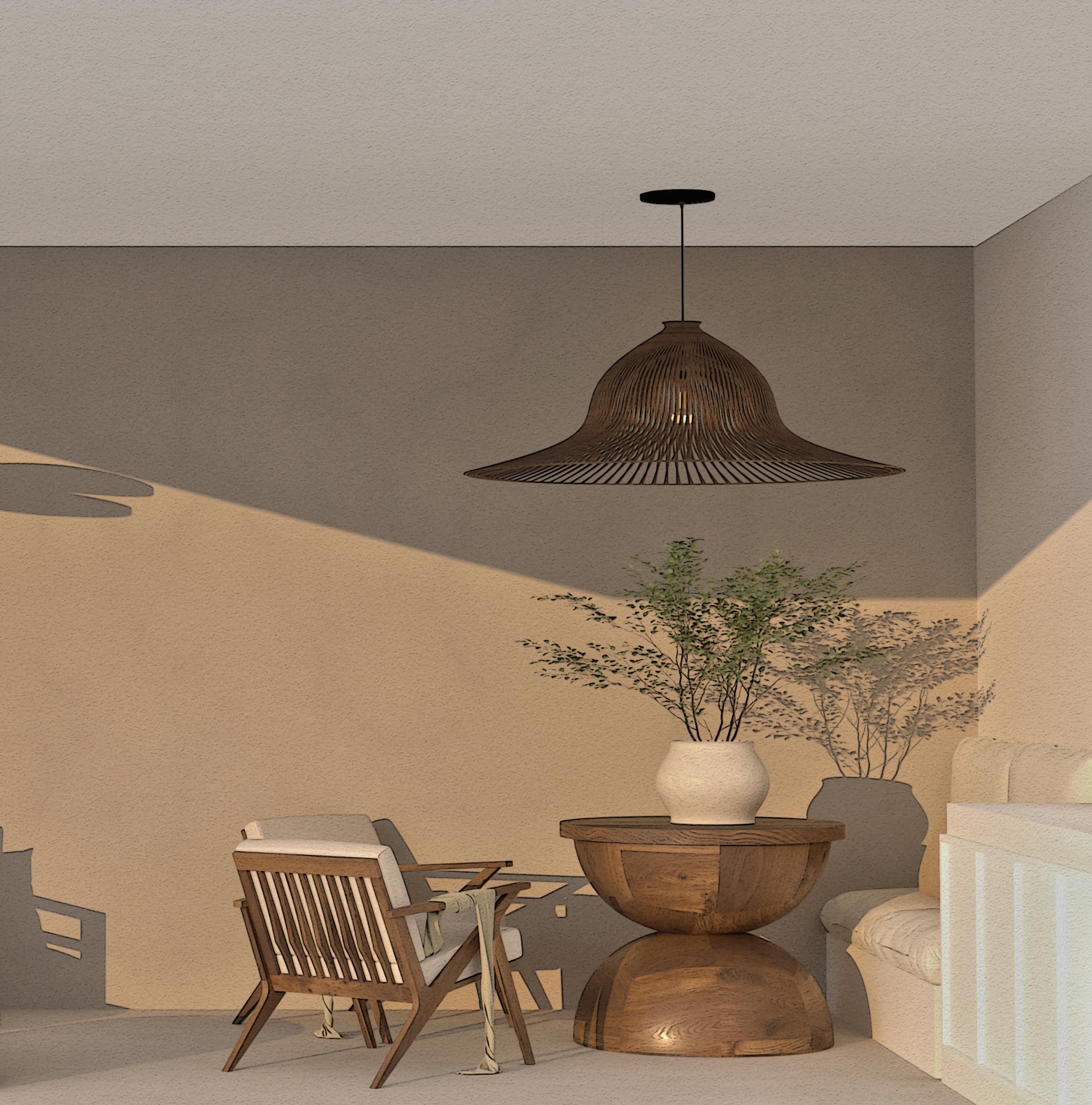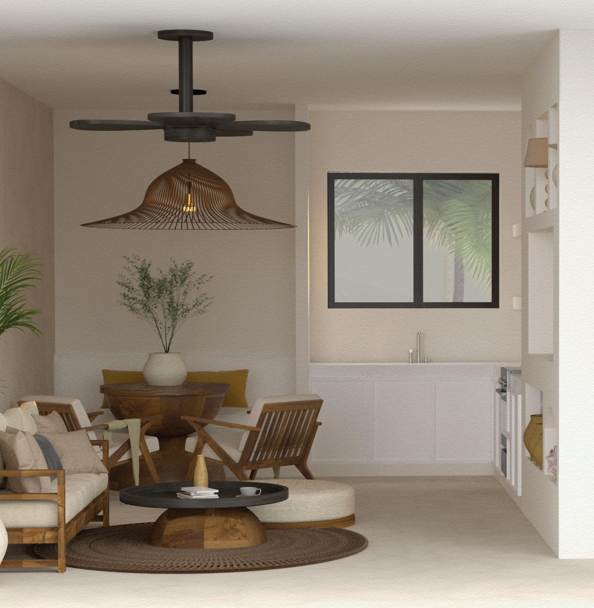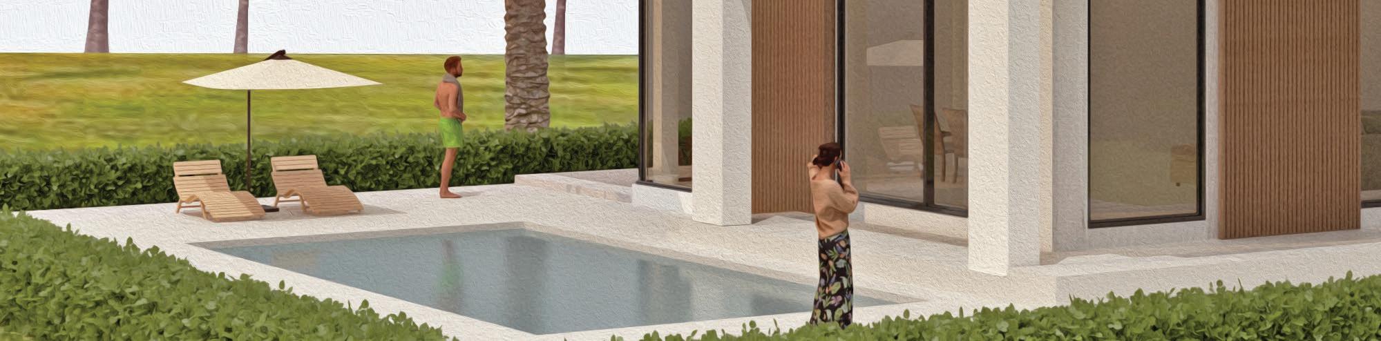 The exclusive villa effortlessly blends into the landscape, enclosing the outdoor common areas while framing the general view towards the exterior. The client intended for the architecture to be composed of natural materials with large sliding doors as soft transitions opening up to the garden and pool. The generous roof structure covers the indoor and outdoor spaces from rain and sun, allowing this special feeling of being around nature in a protected and comfortable manner. This project is a conceptual idea of what the client wants and is currently an ongoing project in Michamvi, Zanzibar, Tanzania.