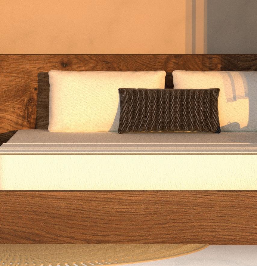 The bedroom was inspired by a modern design, featuring teak and concrete. Combining the beauty of Zanzibar with elegance.