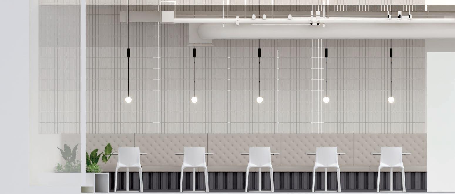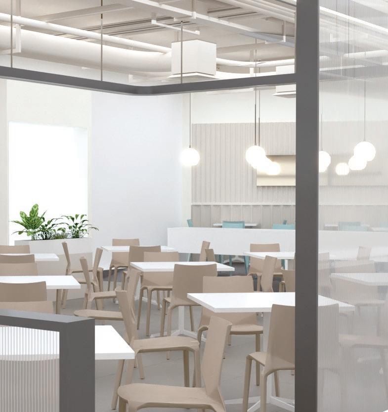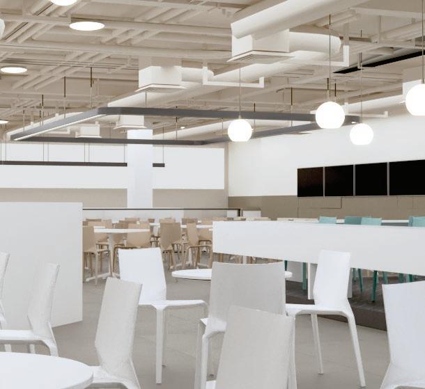 This project was to design a cafeteria for a confidential company. The space is adorned by a slight lush greenery and light toned furniture, infusing a refreshing ambience. The cafteria is a vast space catering for guests to enjoy and lounge. A cafe and restautant seating placed across the cafeteria for many to relax and view flat screen televesions placed across the cafeteria. The design was conceptualized from the clients proposal to create a harmonious space.