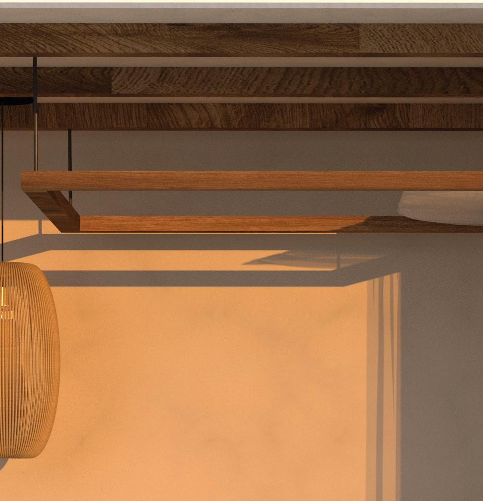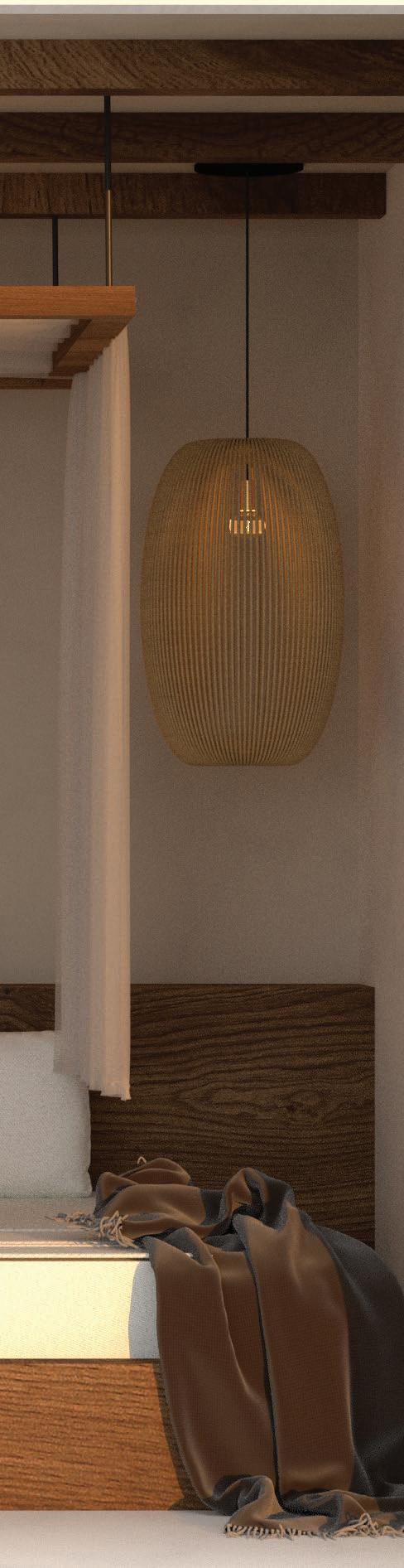 A mixture of hanging pendant and wall pendant was designed to work with the limited space without overcrowding. The wall light fixtures functioning as a unique art wall and enhancing warm light to the room.
