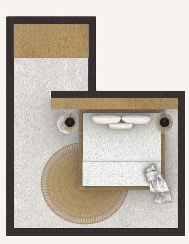 During this project, I selected bespoke pieces of natural wood tones. I designed the living space with a designated shelf for my client to display their unique art work.