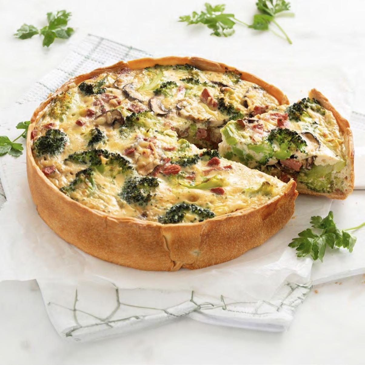 Tip! Laat de quiche een paar minuten afkoelen voordat je hem aansnijdt. Dit zorgt ervoor dat hij beter in stukken te verdelen is. Je kunt de quiche koud eten of even opwarmen in de oven of magnetron.