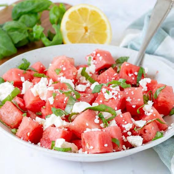 2. Haal de blaadjes van de oregano en laat de olijven uitlekken. Verdeel de komkommer, tomaten, paprika en ui over diepe borden of wijde kommen. Verdeel de oregano en de olijven erover en breng op smaak met peper en eventueel zout.