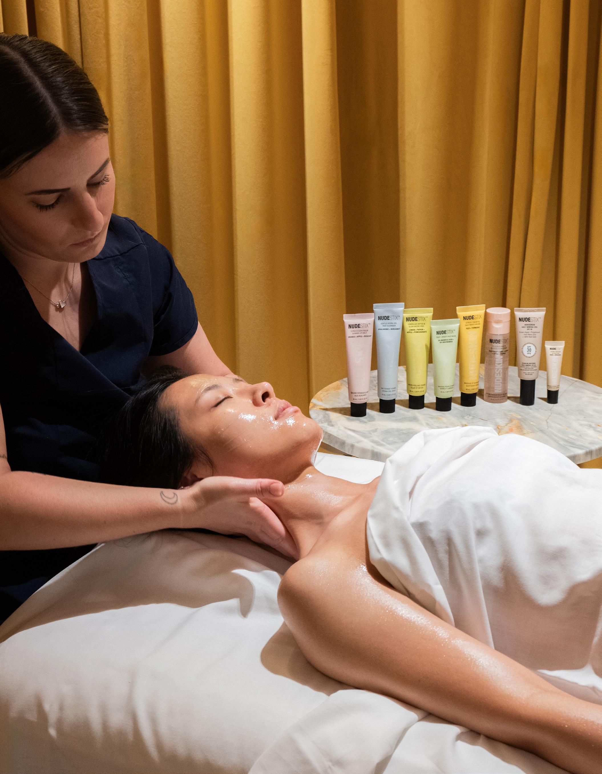 While acids work to dissolve dead skin and pore gunk, enzymes eat away at these things instead. Fruit enzymes are particularly great for sensitive skin since they don’t do too much damage to the healthy tissue that’s hiding underneath. Our Nudeskin Vegan Skin Renewal Facial includes vegan papain enzymes from papaya to enhance your skin’s glow and diminish the appearance of fine lines over time. It also feaatures the Nudeskin Lemon-Aid Detox & Glow Micro-Peel. As a 3-in-1 peel, it works as a deep pore cleanser, skin renewal exfoliator and skin brightener for that extra glow.