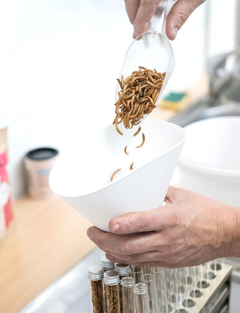 „Ich sehe das Insekt in Zukunft in erster Linie als Lebensmittelzusatz, mit dem einfach sehr hochwertige Nährstoffe in alltägliche Speisen integriert werden können. So bringen wir zum Beispiel gerade Proteinriegel, Protein Balls und Backmischungen auf den