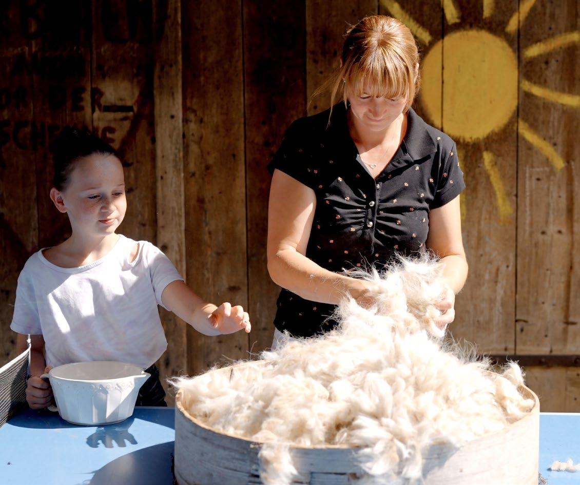 4 Die Verarbeitung der Alpaka-Wolle zieht auch die jüngsten Gäste in ihren Bann.