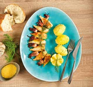 mari vom Grill mit Kräuterbutter, Knoblauch, Petersilie emiger Rahm-Polenta