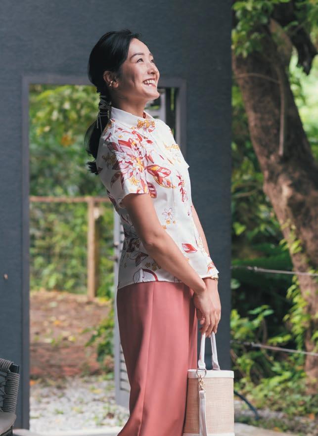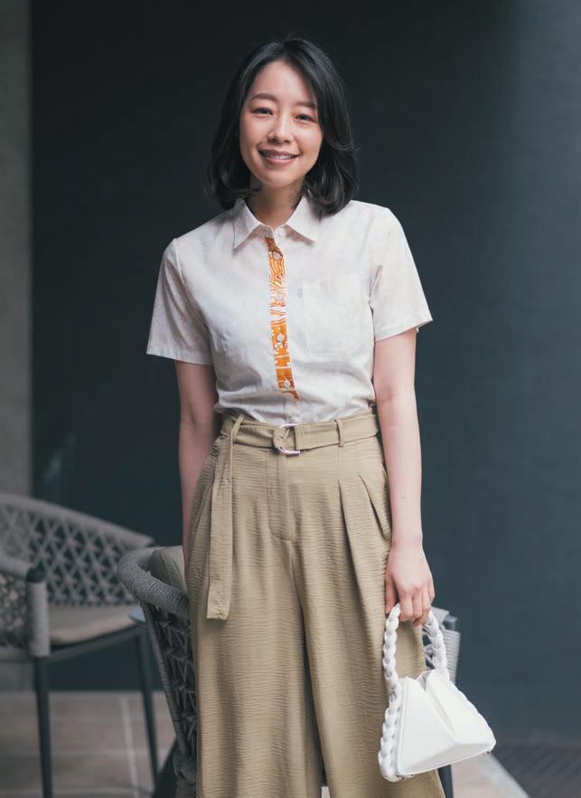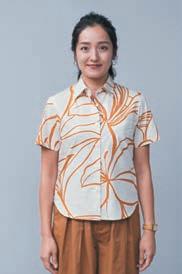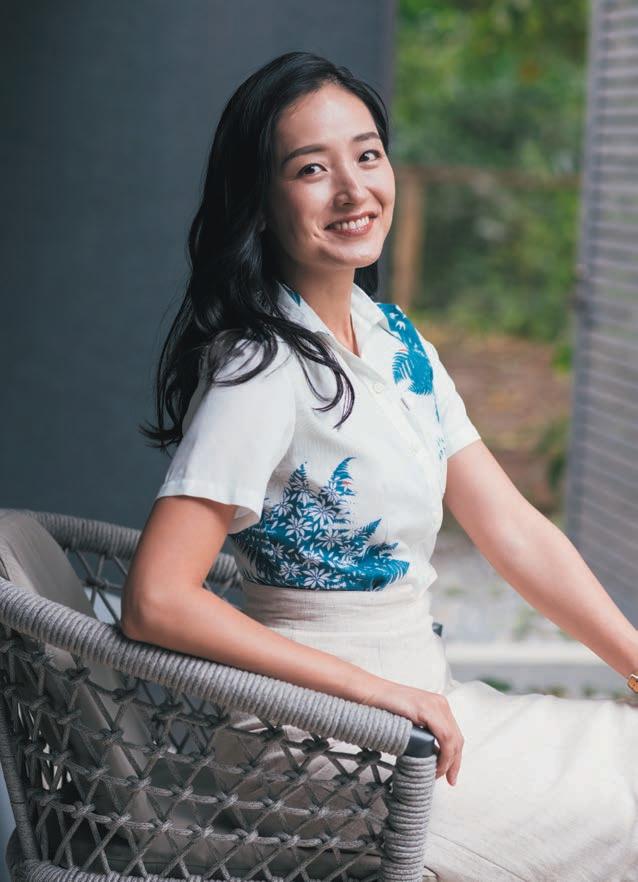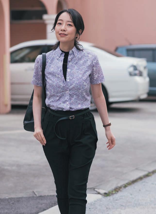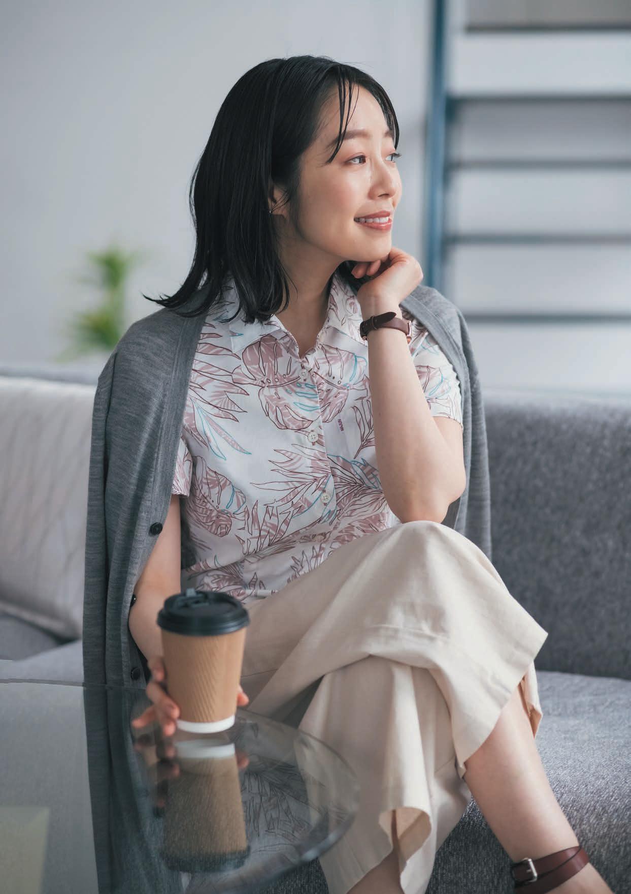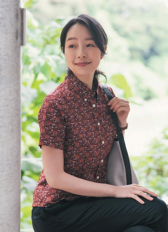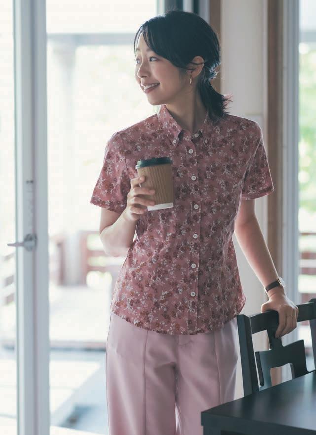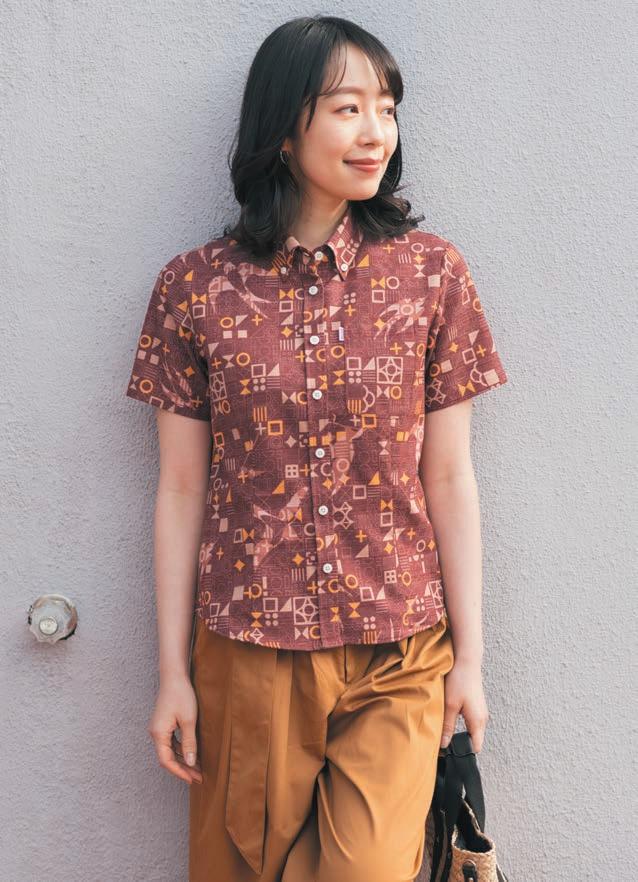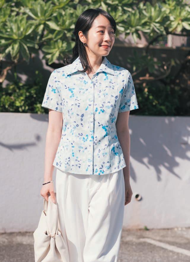 梅に似たシャリンバイと桜に似たテイキンザクラで沖縄の春をイメージした一着。繊細な手 描きモチーフで全体的に上品な雰囲気がありつつ、ざっくりとした質感の生地やトレンド感 のある色味で堅すぎない印象に。