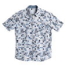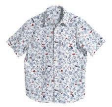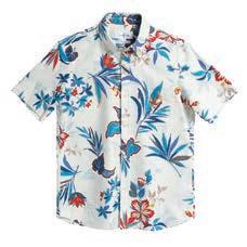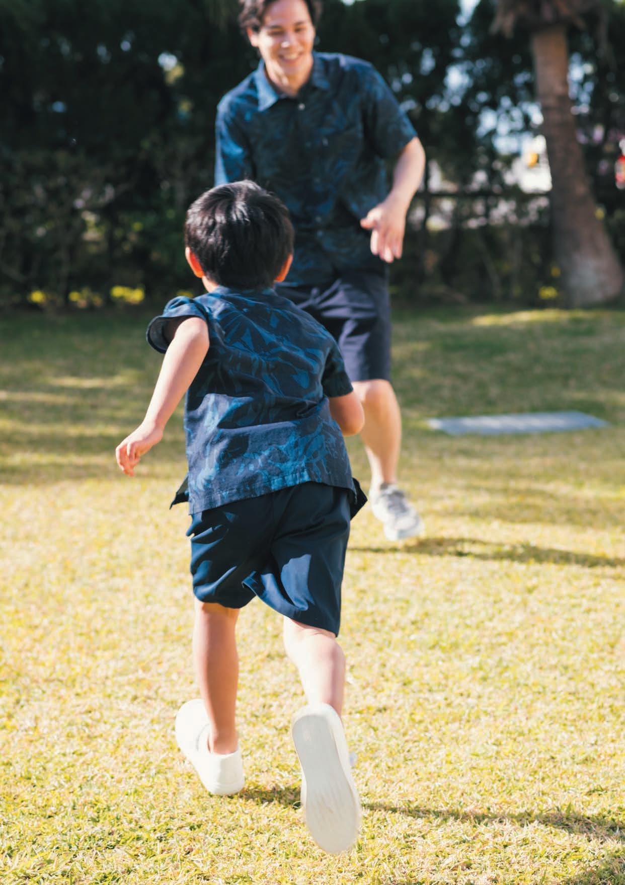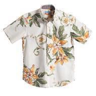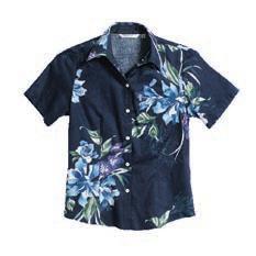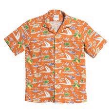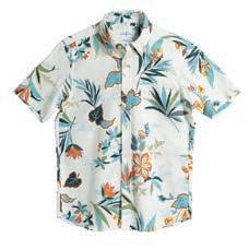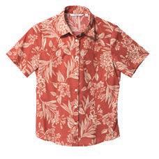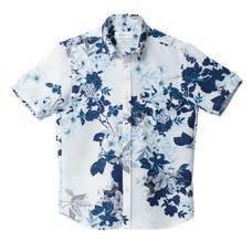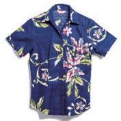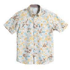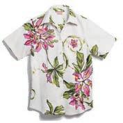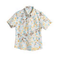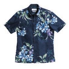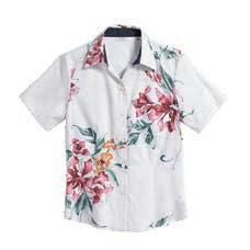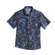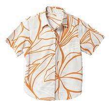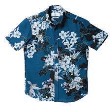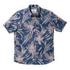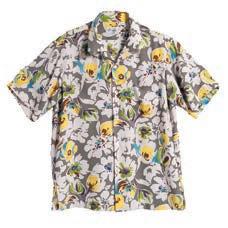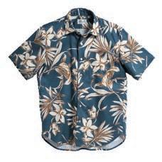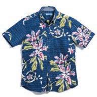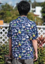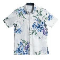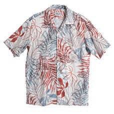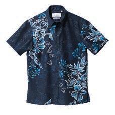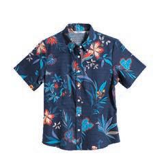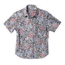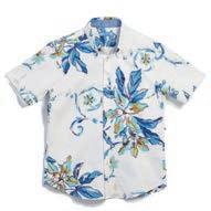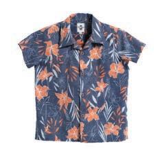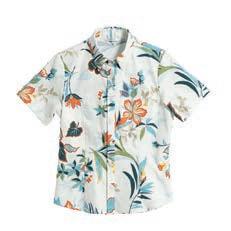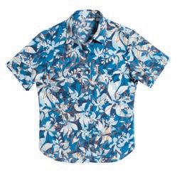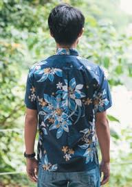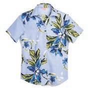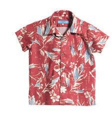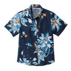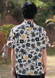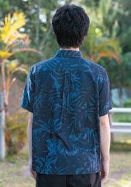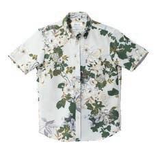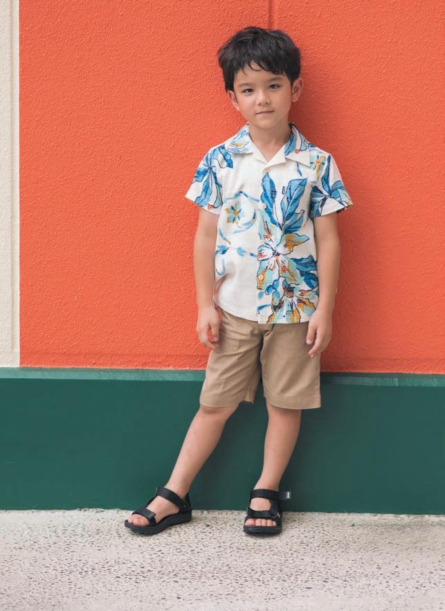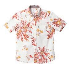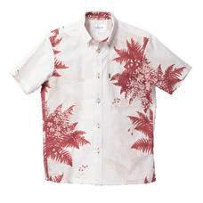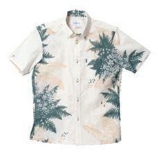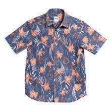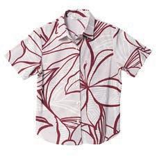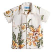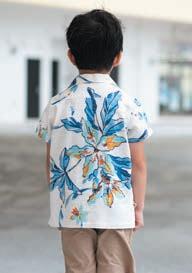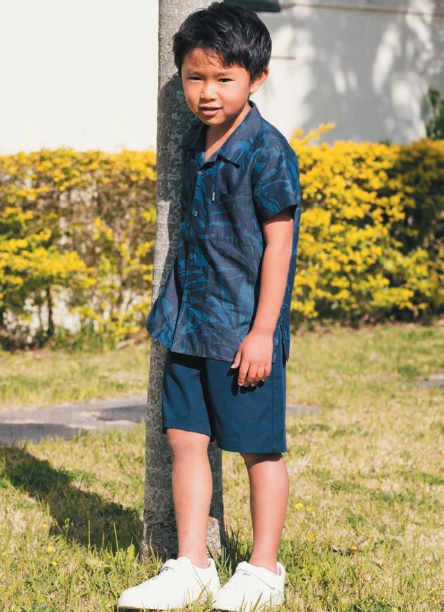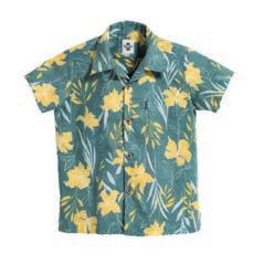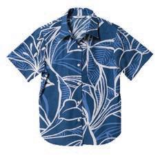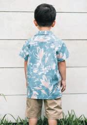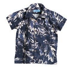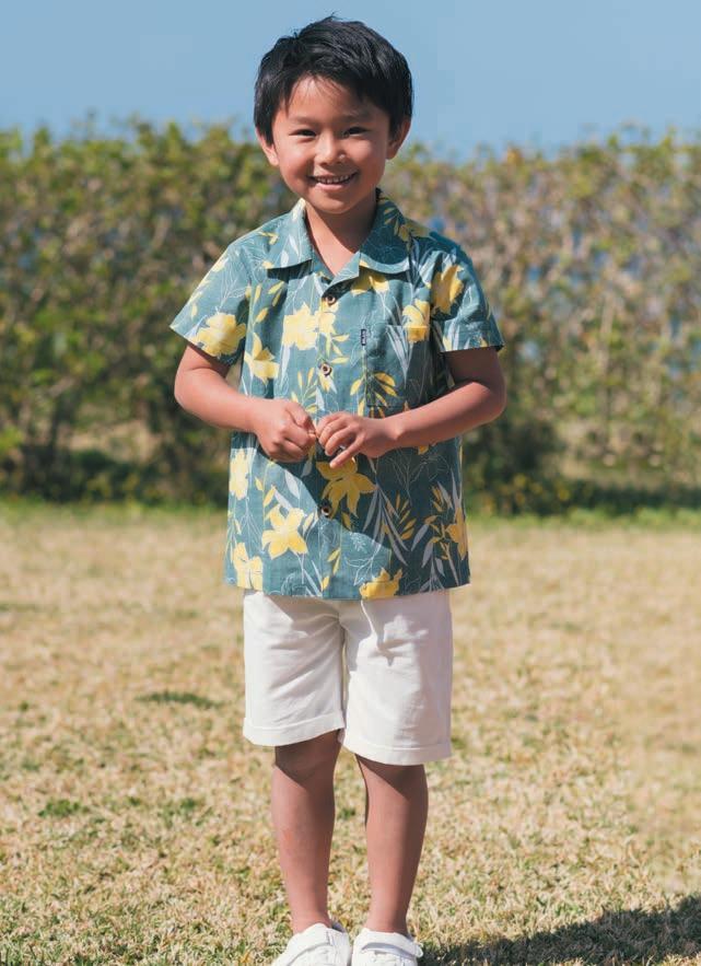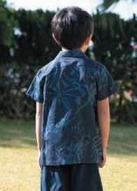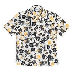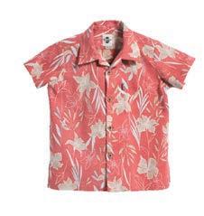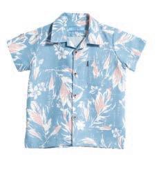 南国の葉とプルメリアとハイビスカスをモチーフに、ほんのりヴィンテージ感を添えて。 やんちゃボーイの気軽なリゾートかりゆしスタイルにぴったりです。通気性の良い快適な 着心地です。