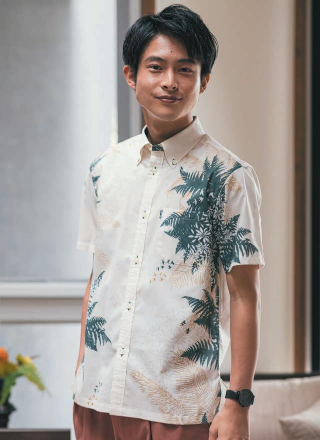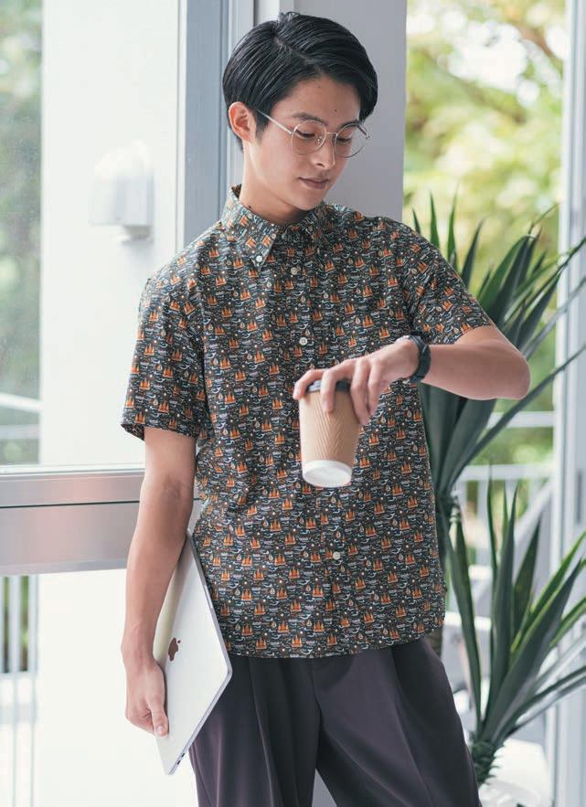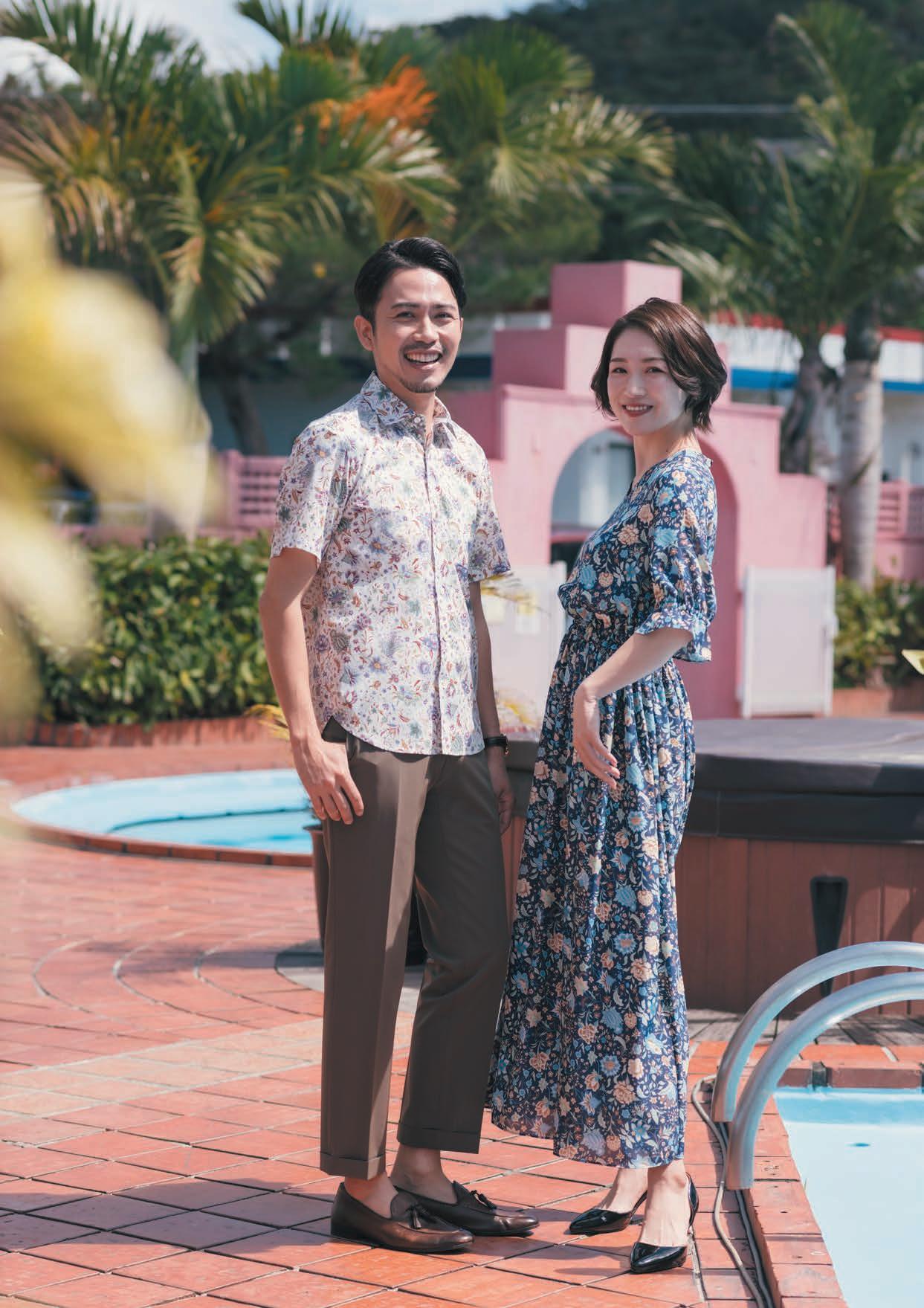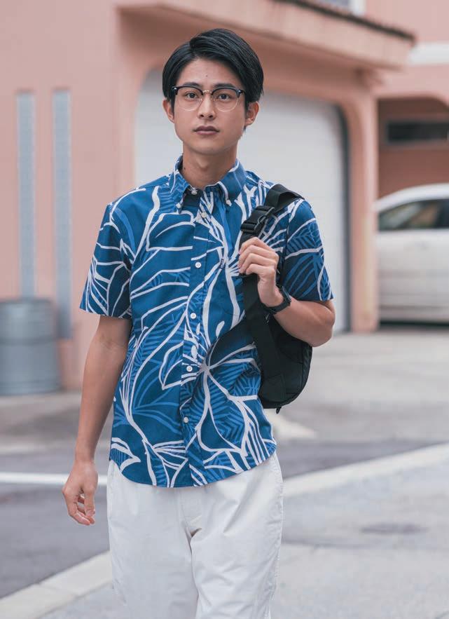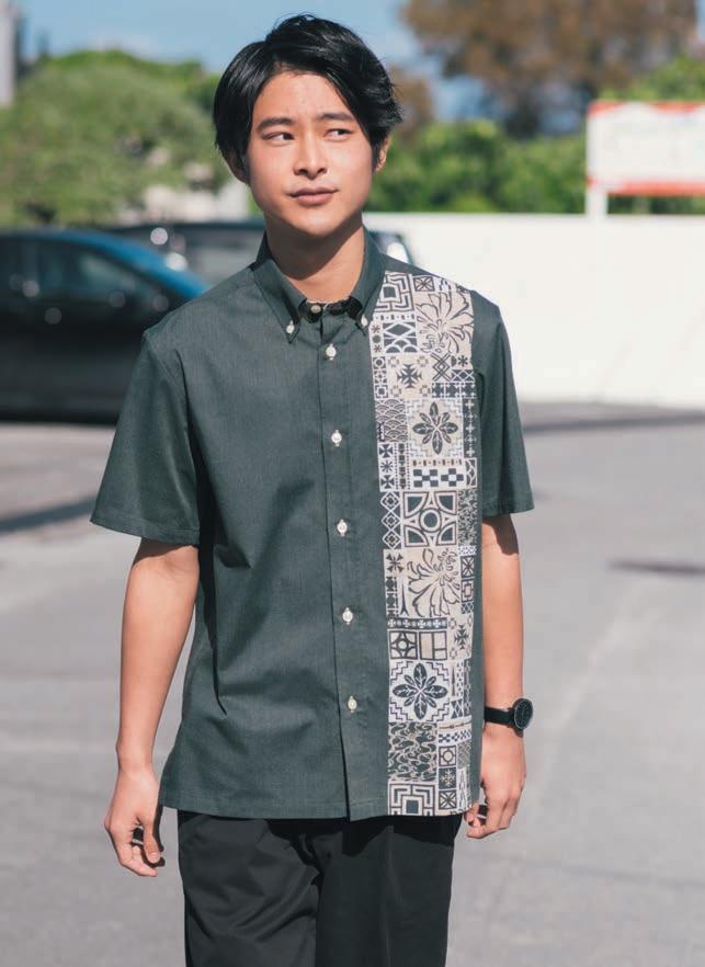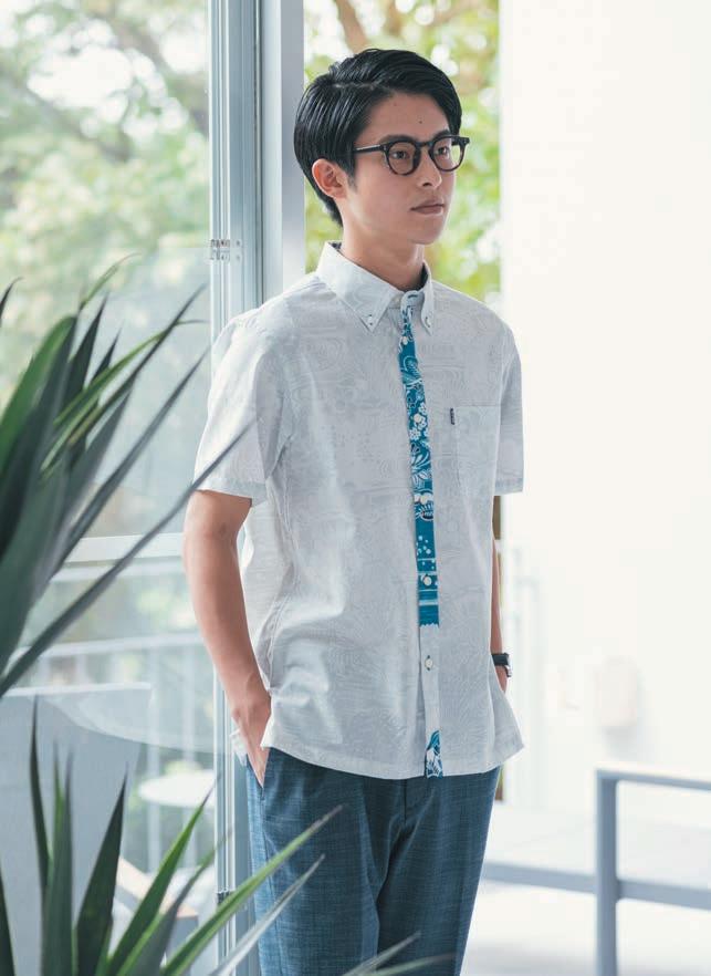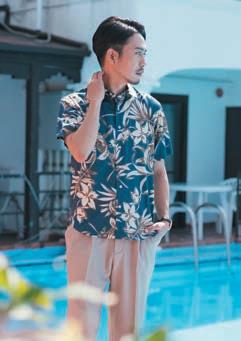着心地のよさと手入れがしやすいファブリックに沖縄の 亜熱帯の自然、独特の文化をモチーフとしたパターンが MAJUNのかりゆしウェアをユニークに仕立てています。