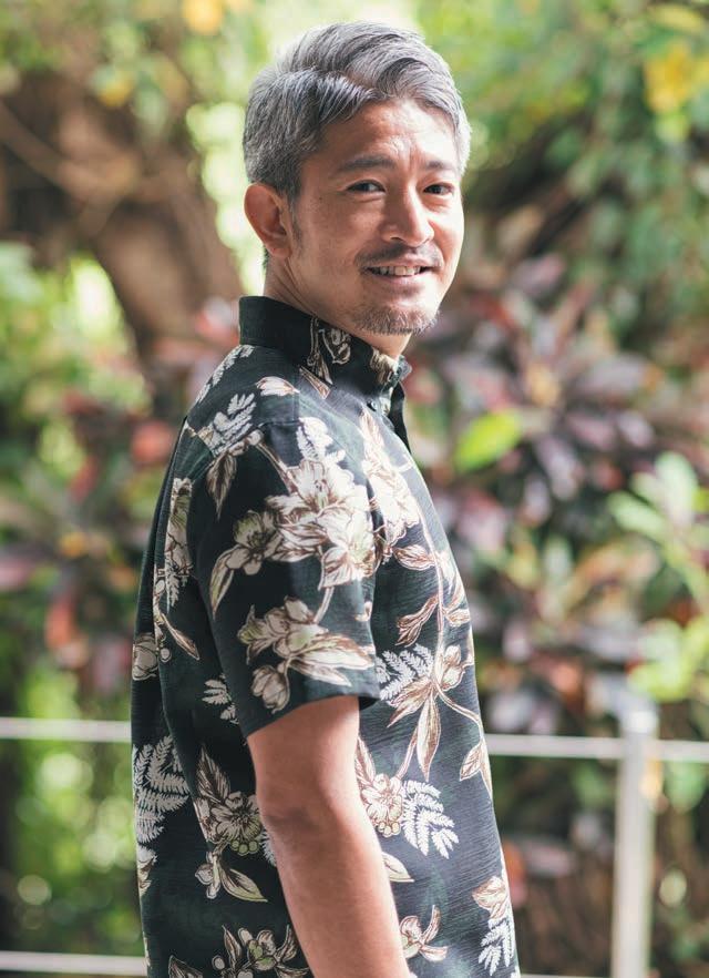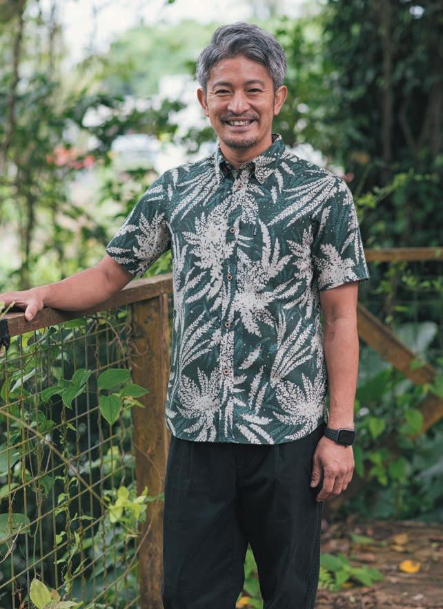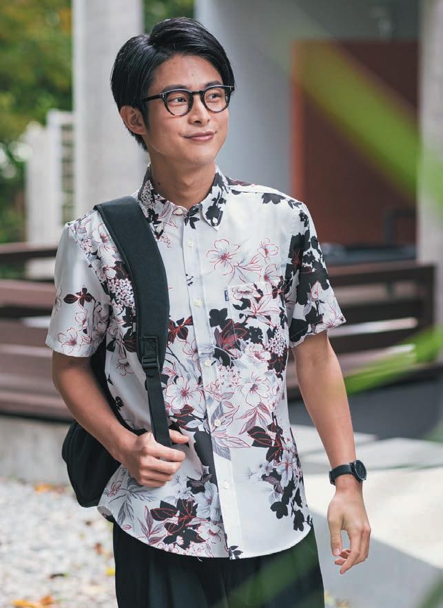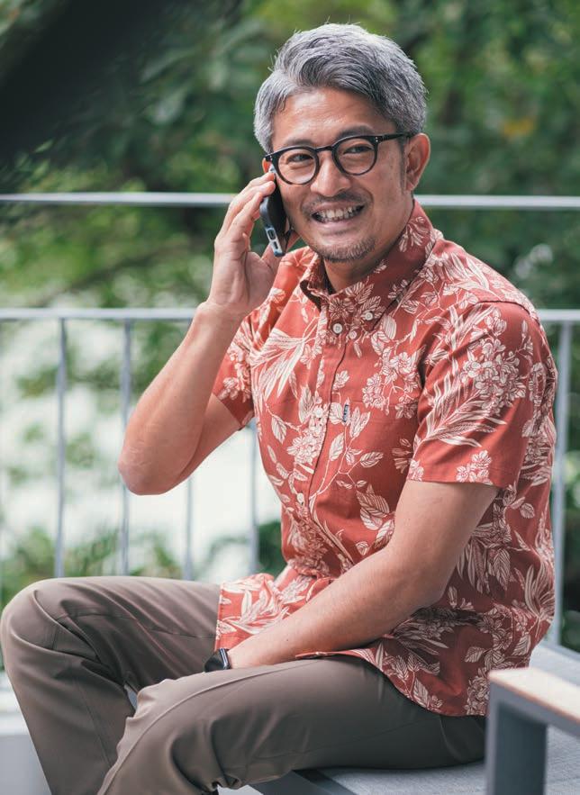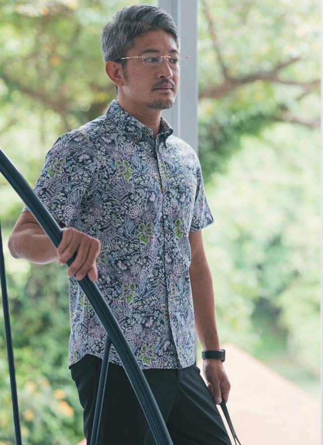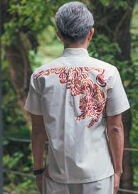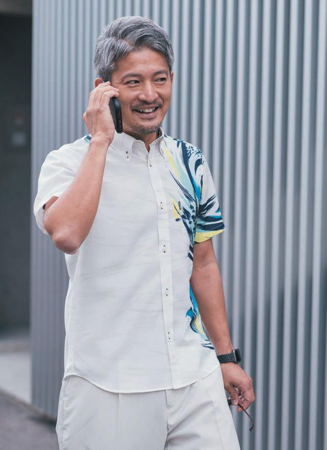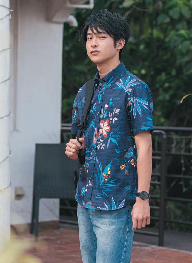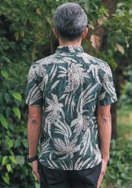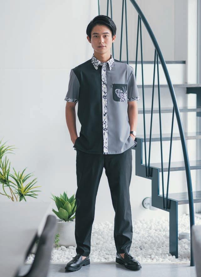 着心地のよさと手入れがしやすいファブリックに沖縄の 亜熱帯の自然、独特の文化をモチーフとしたパターンが MAJUNのかりゆしウェアをユニークに仕立てています。