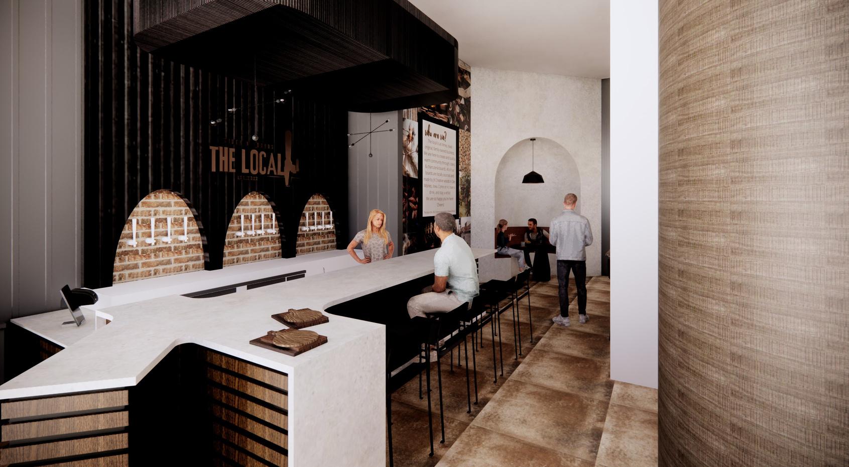 The Local is a cidery and charcuterie board space located in downtown Ames. Along Main Street, there is an abundance of shops that need to stay afloat while college students are gone. The Local is designed around the admiration of creativity and community. Sparked by the interest in flow and connections between the local atmosphere through comforting and warm tones, the ideas pour into the design in a natural and creative way.