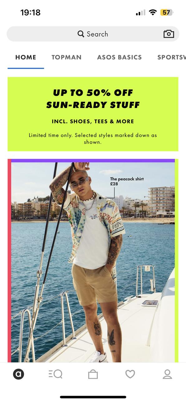 - This is also an example of how the F-shaped layout can change depending on the channel, as the optimisation of Asos’ app has the dropdown menu on the bottom.