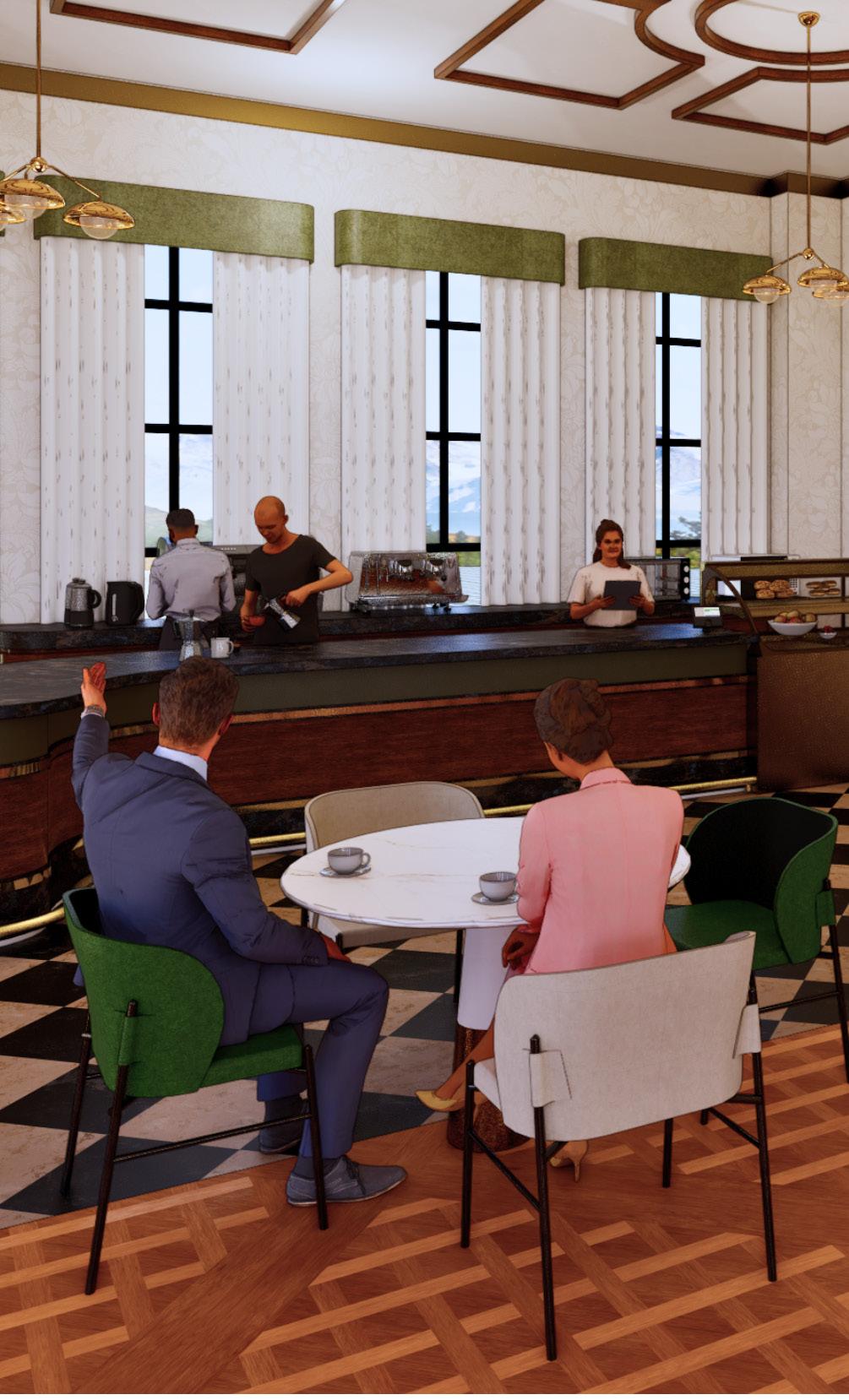 Subtle gold accents and parquet flooring incorporated to reflect refined and elegant elements of gold rush era