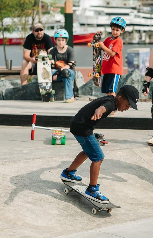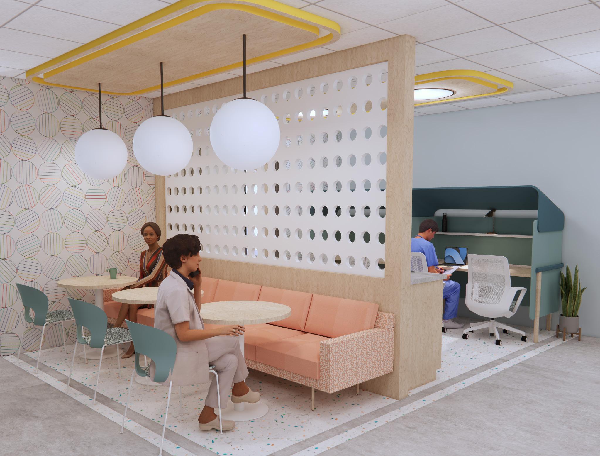 Elevate draws inspiration from the vibrant and energetic spirit of Jake’s Skatepark in Baltimore, MD. The design concept mirrors the vivid colors, playful graphics, and interactive spaces within the skatepark. Raw materials like concrete and wood are used to emulate the urban, industrial character. Fluid lines and curves of skatepark ramps and bowls inspired architectural elements such as curvilinear casework, flowing partitions, and dynamic ceiling designs.