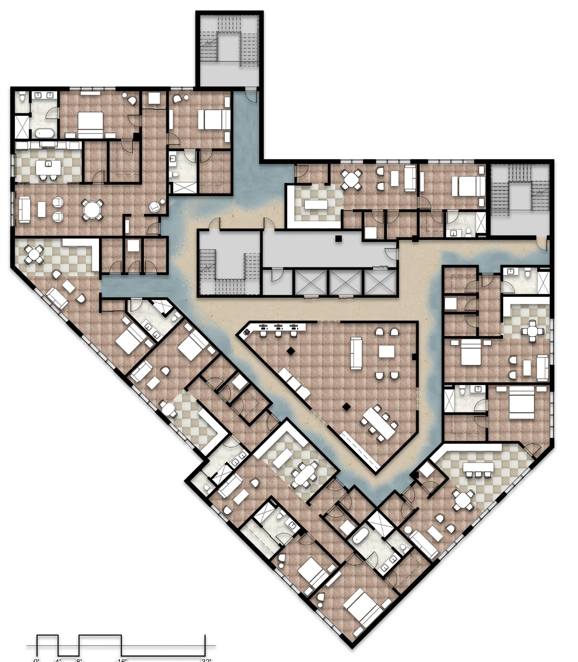 Planning, 3D Modeling + Rendering, FF+E Selection, Guestrooms +