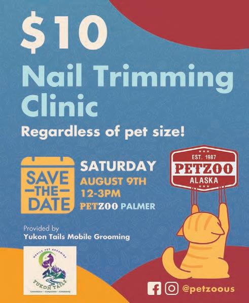 big a problem in Alaska as in other areas, but if you use treatments, check with your vet—some over-the-counter products can be toxic even when used as directed. Be mindful when taking your dog to summer events like concerts or fairs; these situations can be stressful and increase the risk of your dog getting lost. Know what your dog can handle. Some dogs are very frightened by fireworks or firearms—keep them inside during loud celebrations; some may even need medication to help them cope. Make sure your dog is microchipped and that the contact info is up to date. Your dog should also wear a collar with an ID tag. Now go out and enjoy your summer, along with your dog friend—but do it safely.
