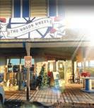 What was meant to be a quick halfhour visit to check on things became a 6-hour ordeal. Becky pulled Kirk’s face off, and one of his hooves as the glue had dripped down onto and destroyed the coffee beans. She said, “One by one, I took another glue, one I had purchased from Amazon, and carefully glued new spruce cones on Kirk’s face.” Luckily, she had gathered MANY! “Yup, his hoof, carefully, one-by-one I replaced every coffee bean my crew had carefully put in place.” Hours later, Kirk had a new face and hoof, which she sprayed repeatedly with Varathane. She didn’t have enough time to test the new glue. It held. Becky said she walked by that train every day with fear in her heart that one rainy morning, she’d find Kirk’s face lying on the tracks. She paused before adding, “I probably would have removed him and put little Cindy Lou Fox in the window.”