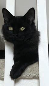 Mia (aka “Mama Mia”) is a two-yearold all-black, medium-haired polydactyl spayed female. Mia loves attention but does not demand it. She is quite quiet and demure. She has extra toes on all four feet, and a busy tail that curves over her back. She was originally an indoor-outdoor cat and would love a home that allows her the freedom to go outside when she is in the mood (after learning where home is).