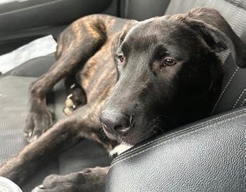 and impulse control training. He is fully vaccinated, microchipped and neutered. He is approximately an eight-month-old Malinois/Cane Corso mix. He gets along with kids and other dogs but doesn’t always have the best manners. He’ll need a patient family to teach him, preferably someone who has experience with one or both of these breeds.