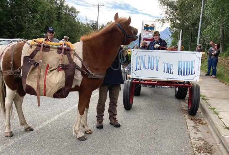 The official parade finish was the Palmer Pioneer Home. There the residents clapped when Hrimmi walked by. She paused, with Pete remarking, “She thinks this parade was for her.” Our unofficial finish was the Palmer Senior Center, where Hrimmi gravitated in the direction of her hay bag, which had been left tied to the trailer.