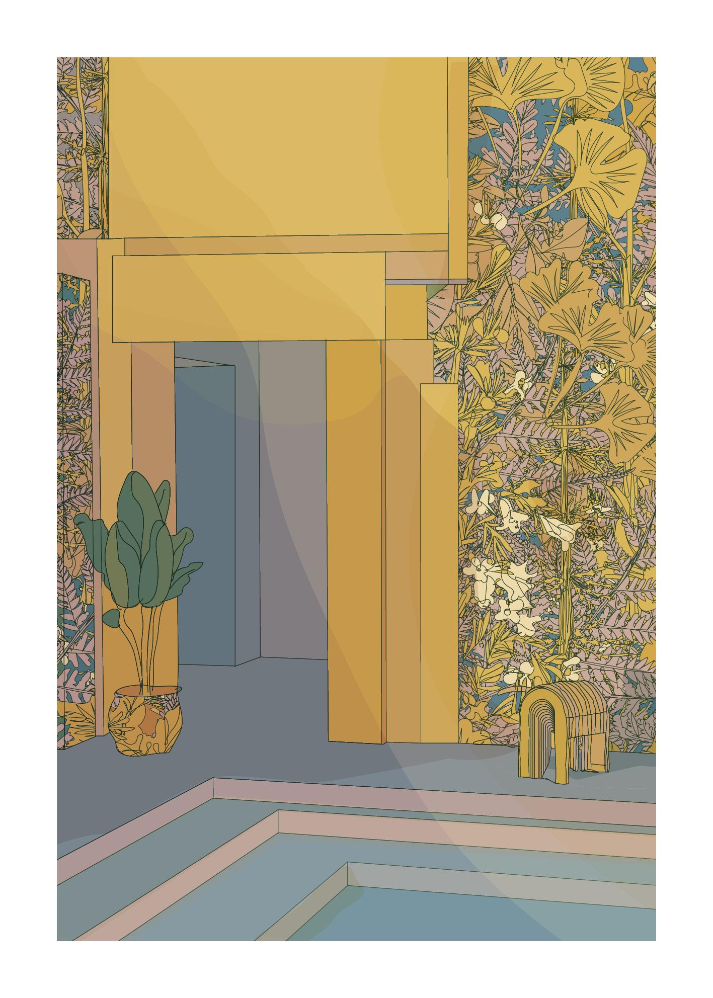 This sanctuary unfolds as a dreamy view from the ground to the sky. Starting with mostly ground-dwelling flora and growing