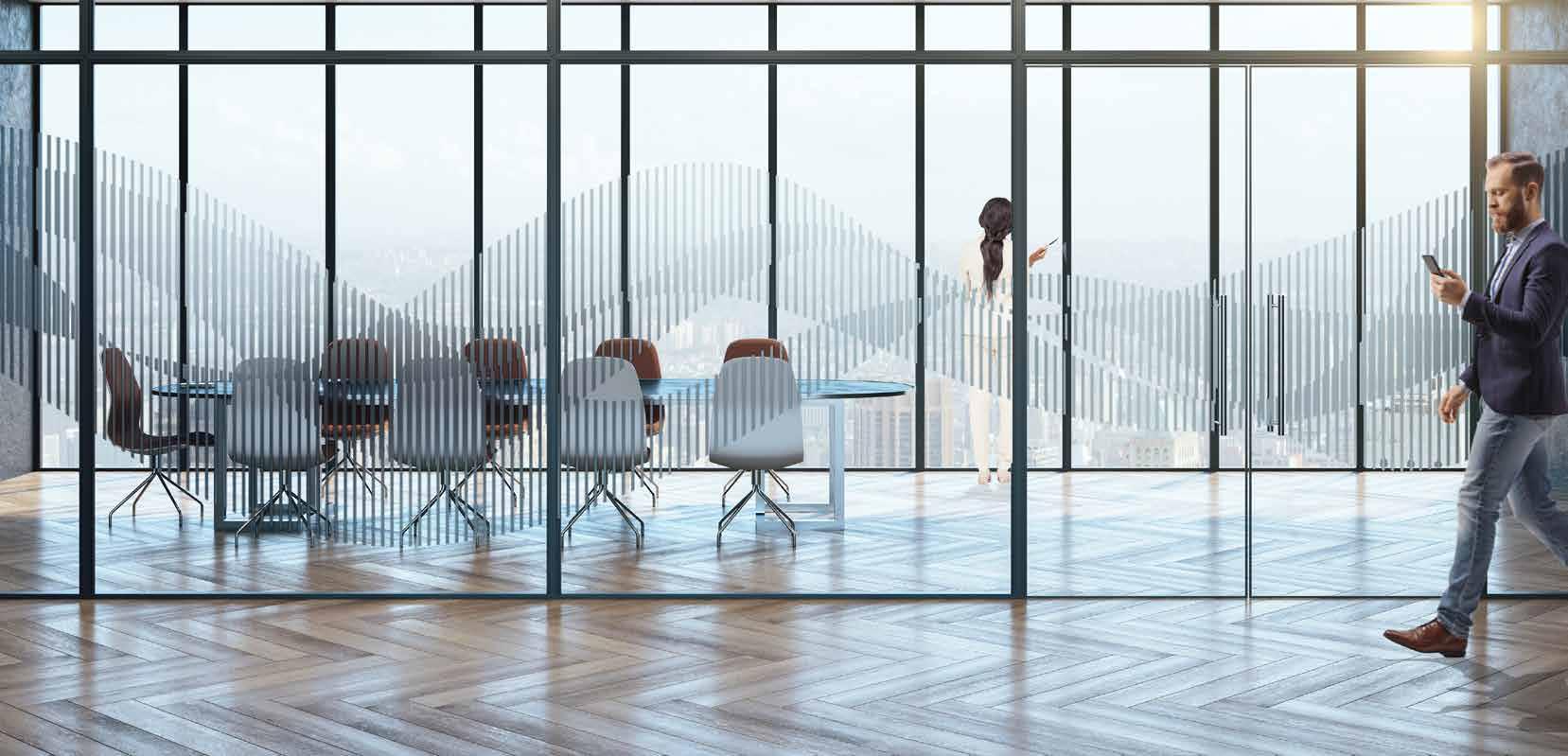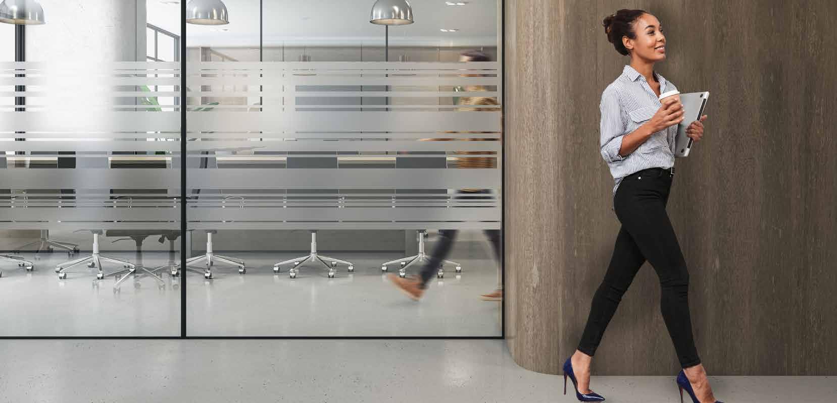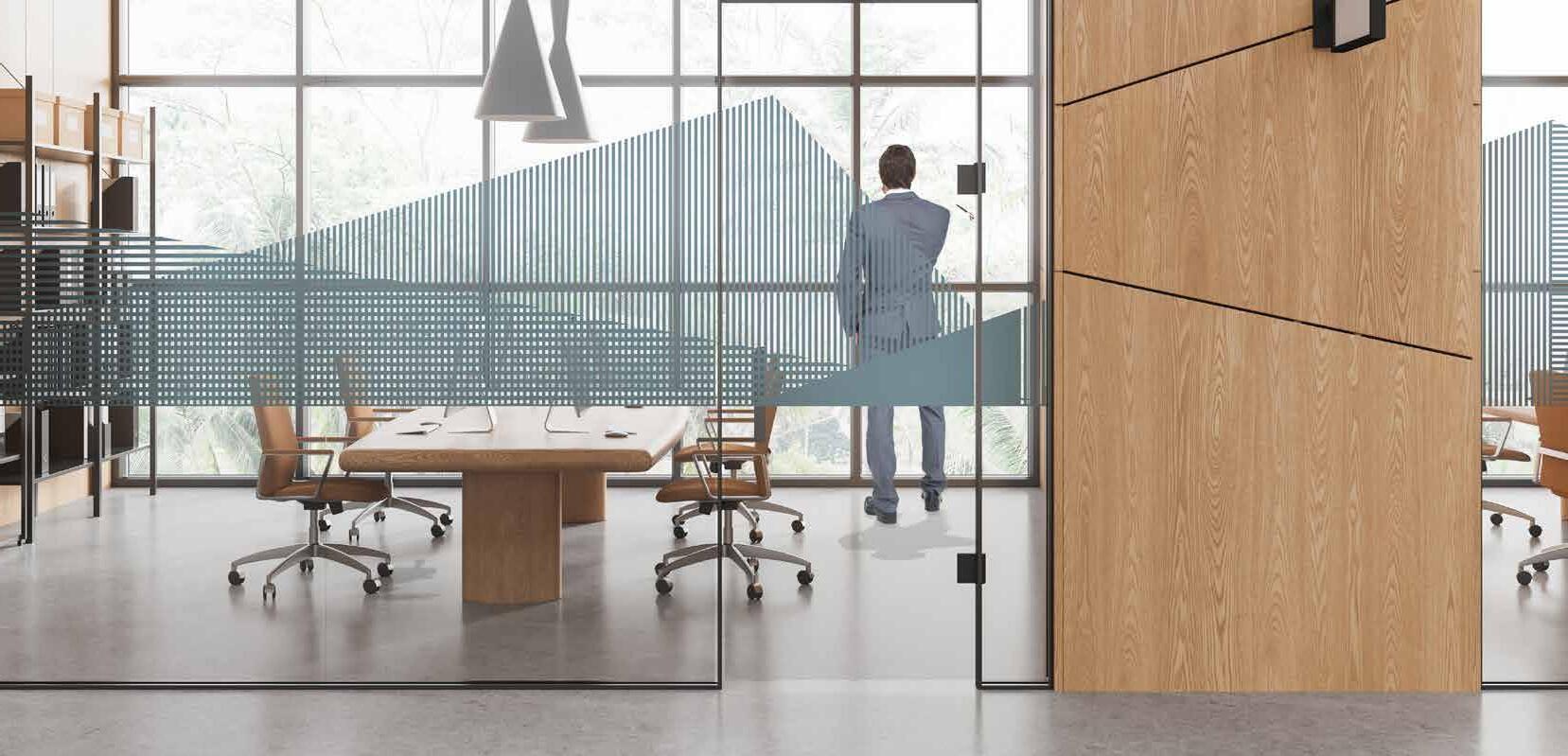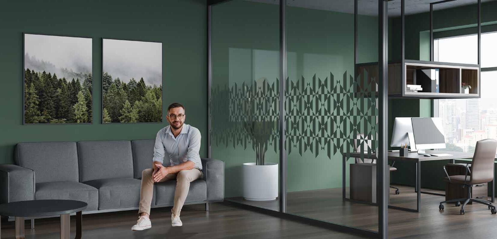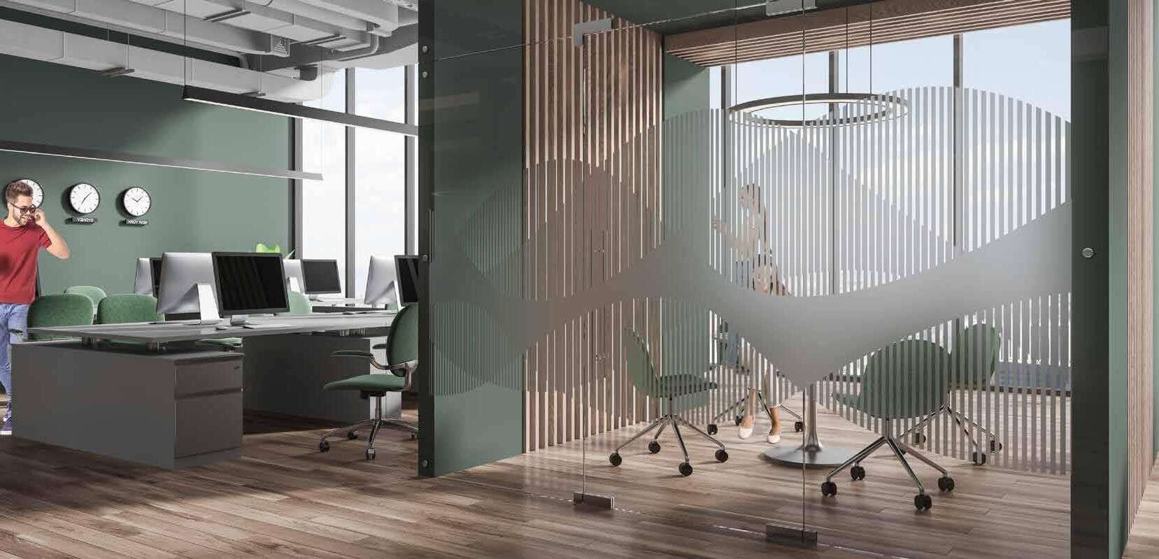 I dag er kontorlandskap, skoler og helsebygg i endring. Der det før var små cellekontor er det i dag landskap, stillerom, arbeidssoner, sosiale soner og teamsrom. Det krever en helt annen type veifinning og skjerming enn før. De moderne glassveggene, skilleveggene og landskapene gir nye muligheter til å lage estetisk gode veggflater og samtidig formidle identitet, tilhørighet og gi verdifull informasjon.