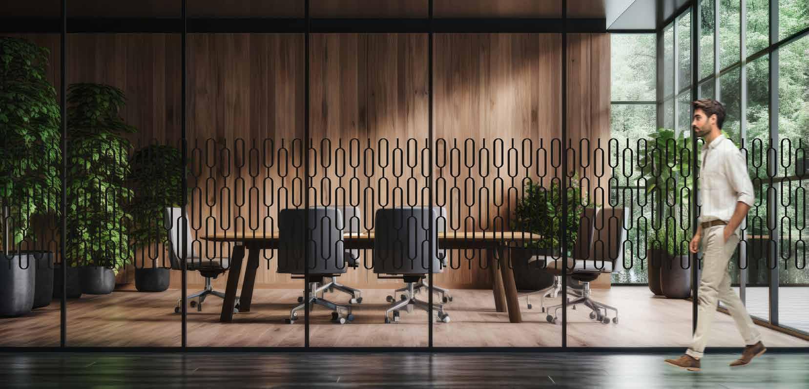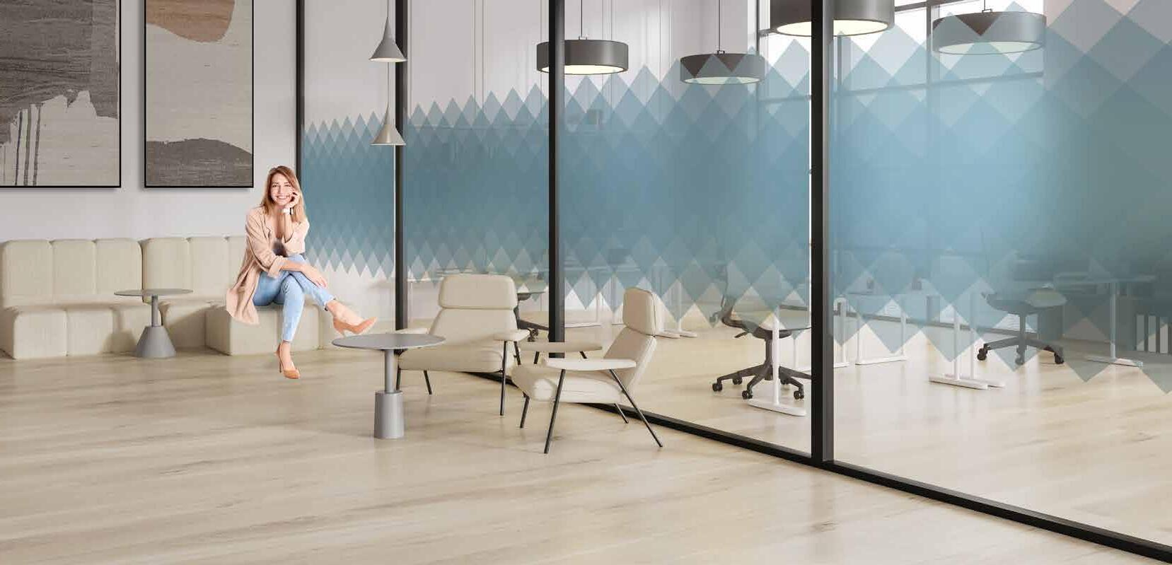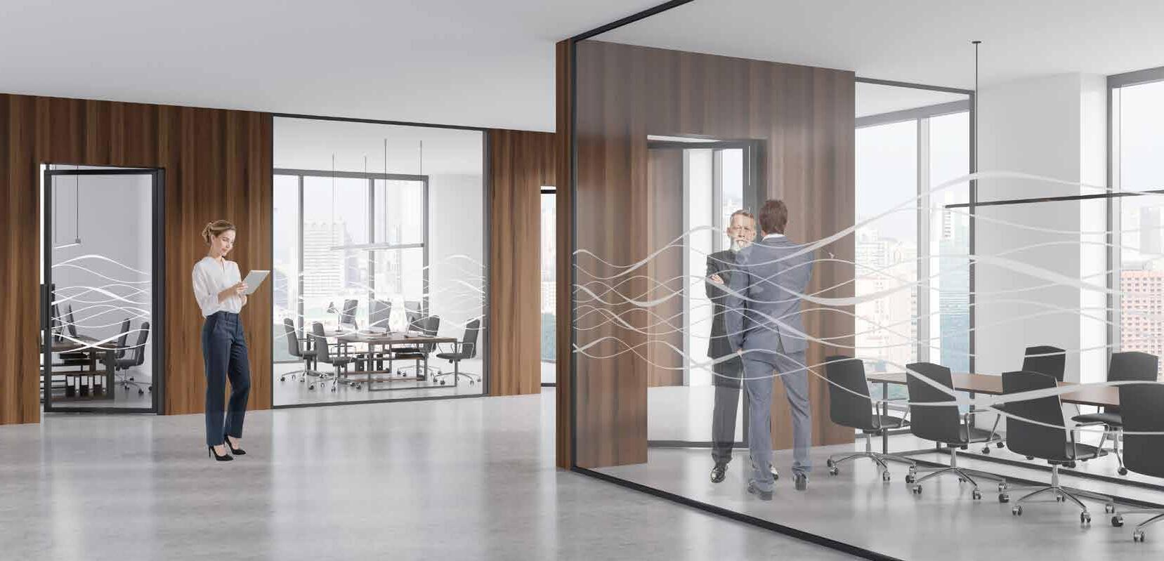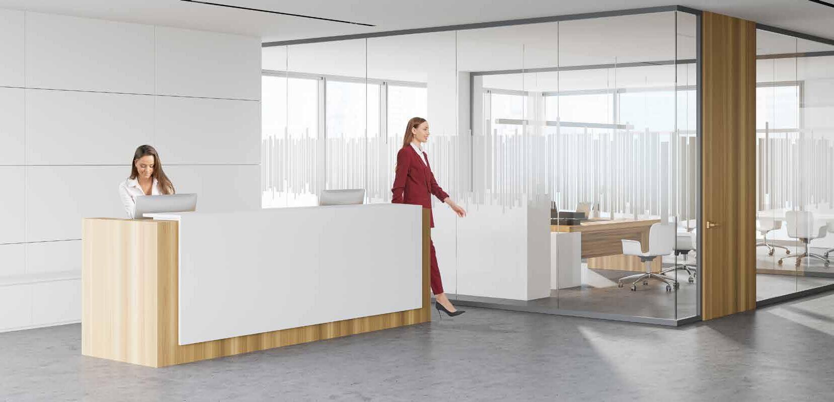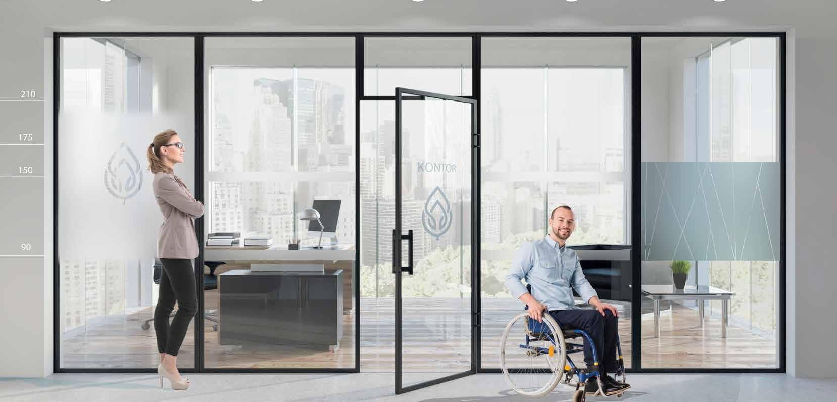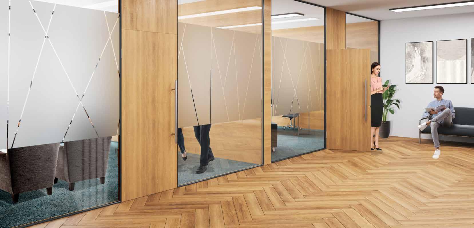 I dag er kontorlandskap, skoler og helsebygg i endring. Der det før var små cellekontor er det i dag landskap, stillerom, arbeidssoner, sosiale soner og teamsrom. Det krever en helt annen type veifinning og skjerming enn før. De moderne glassveggene, skilleveggene og landskapene gir nye muligheter til å lage estetisk gode veggflater og samtidig formidle identitet, tilhørighet og gi verdifull informasjon.